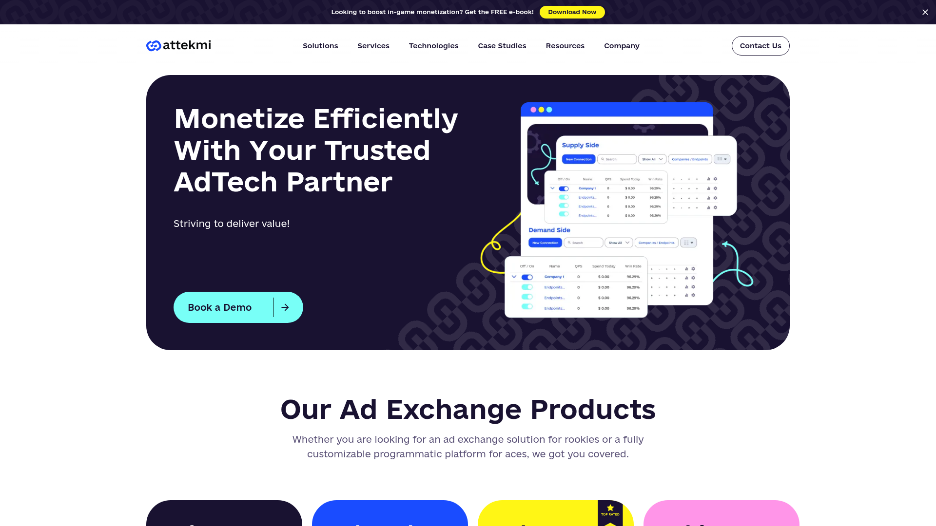 Here's a list with 10+ Attekmi Alternatives: AdGlare https://www.adglare.com/white-label-ad-server Adkernel https://adkernel.com Adverxo https://www.adverxo.com Bidscube https://bidscube.com/white-label-video-ad-server dJAX Adserver https://www.djaxtech.com/white_label_adserver.html ExAds https://www.exads.com Hilltopads https://www.hilltopads.com SmartyAds https://smartyads.com Uplers https://www.uplers.com/white-label-agency